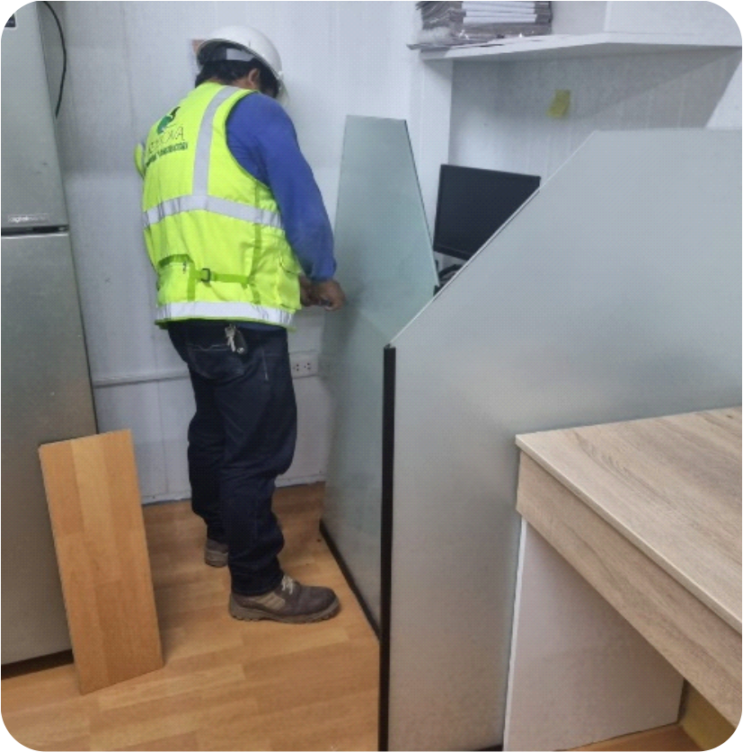 Diseño de ambientes e implementación de oficinas, creando espacios funcionales y estéticamente atractivos.